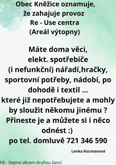 Obec Kněžice oznamuje, že zahajuje provoz Re - Use centra (Areál výtopny)